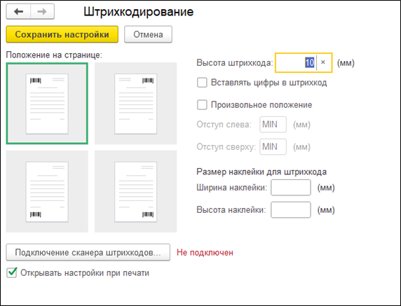 Параметры генерации штрихкодов задаются в персональных настройках пользователя.