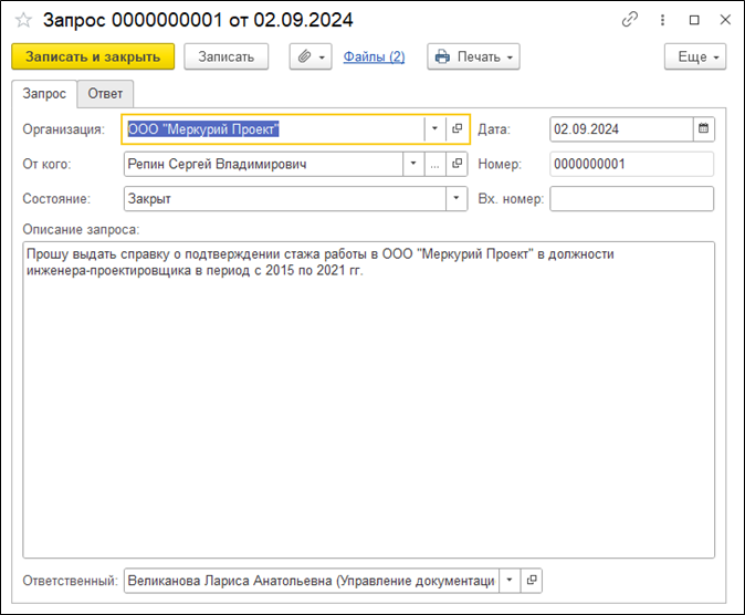 Система позволяет регистрировать и обрабатывать запросы на предоставление архивных сведений (от физических лиц, организаций, государственных органов). Для каждого запроса создается карточка, в которой фиксируется: