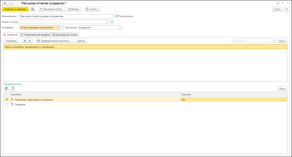 · Только мне (личная рассылка автора) – отчеты получает только создатель рассылки.